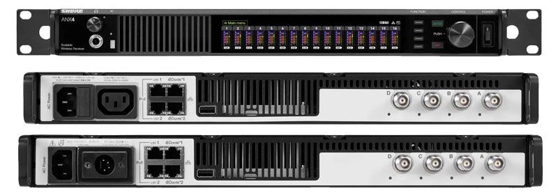 Shure ANX4 是一款好灵活的优良、多通道数无线接收机,可接收多达 16 个 Shure Axient Digital 通道或 24 个 Shure ULX-D 无线通道(在单个机架空间内) 较大程度地提供灵活性,ANX4并未预配置有开启的无线频道,但允许您购买单通道和四通道增量,并在您的ANX4*中开启所需确切数量的通道。许可证可以在一个 ANX4 中开启,然后根据需要移除并在另一个 ANX4 中开启。并通过您的 ShureCloud 用户帐户进行管理。 ANX4** 具备屡获殊荣的 Axient Digital 和 ULX-D 接收机的所有效果功能,这些功能使其成为世界各地舞台、设施、巡演和现场的标准。无论您在 Axient Digital 还是 ULX-D 传输模式下操作 ANX4,ANX4 都能在单机架设计中提供大量无线音频通道,从而大的限度地利用您的预算、机架空间和机架重量。此外,这种1RU格式还能够优化大型频道环境中的天线配置。 *ANX4出厂时未预配置任何开启的无线通道。通道许可证单独出售并且是操作所信守合同的。 **系统功能取决于开启的传输模式:Axient Digital 或 ULX-D(ANX4 不同时支持两个系统)。