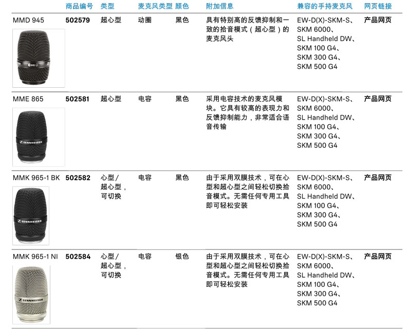 森海赛尔EW-D无线系统兼容多款Sennheiser麦克风,您可根据需求随意搭配选择。